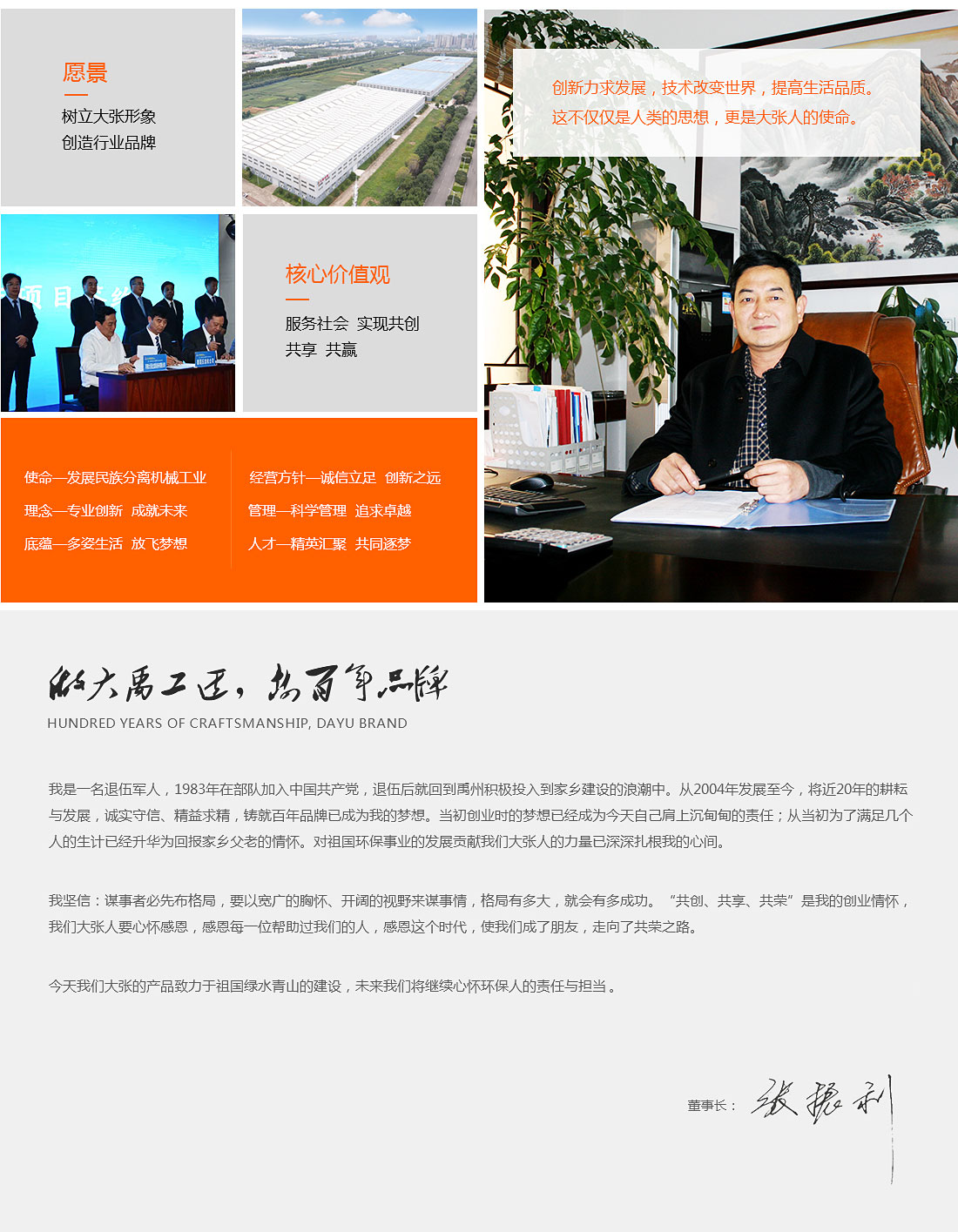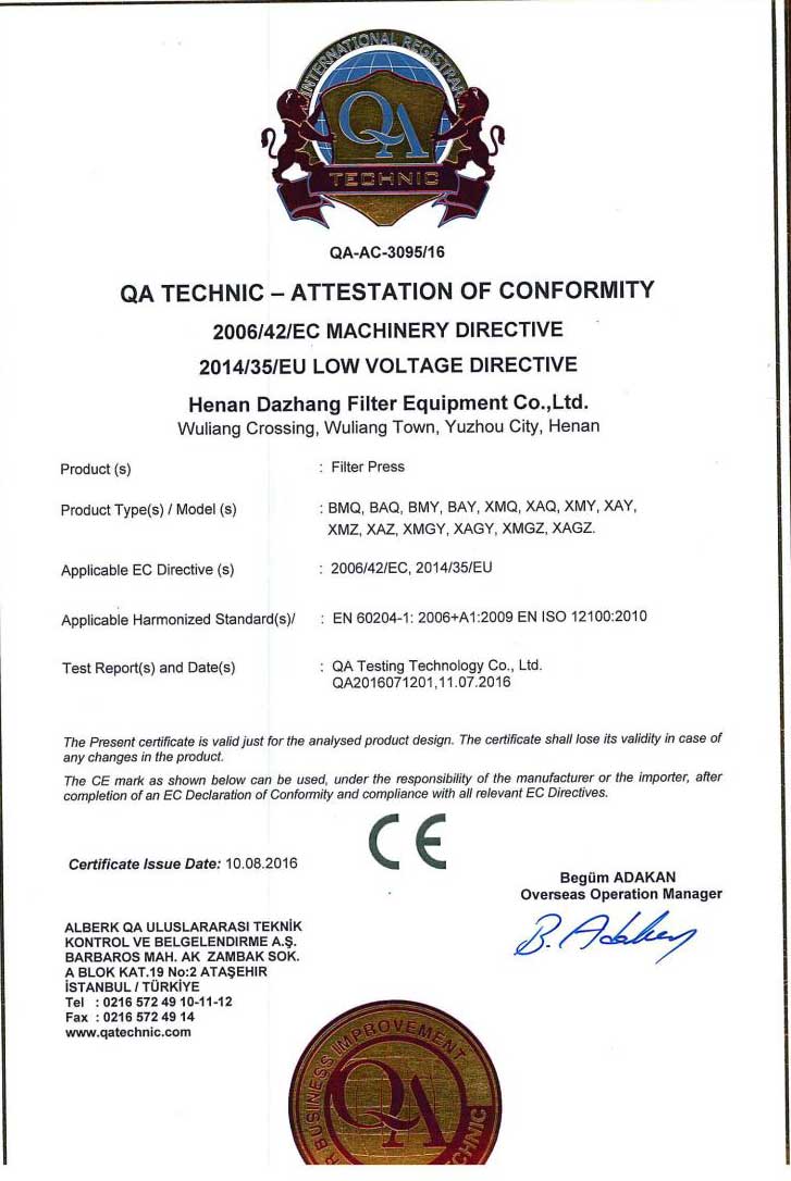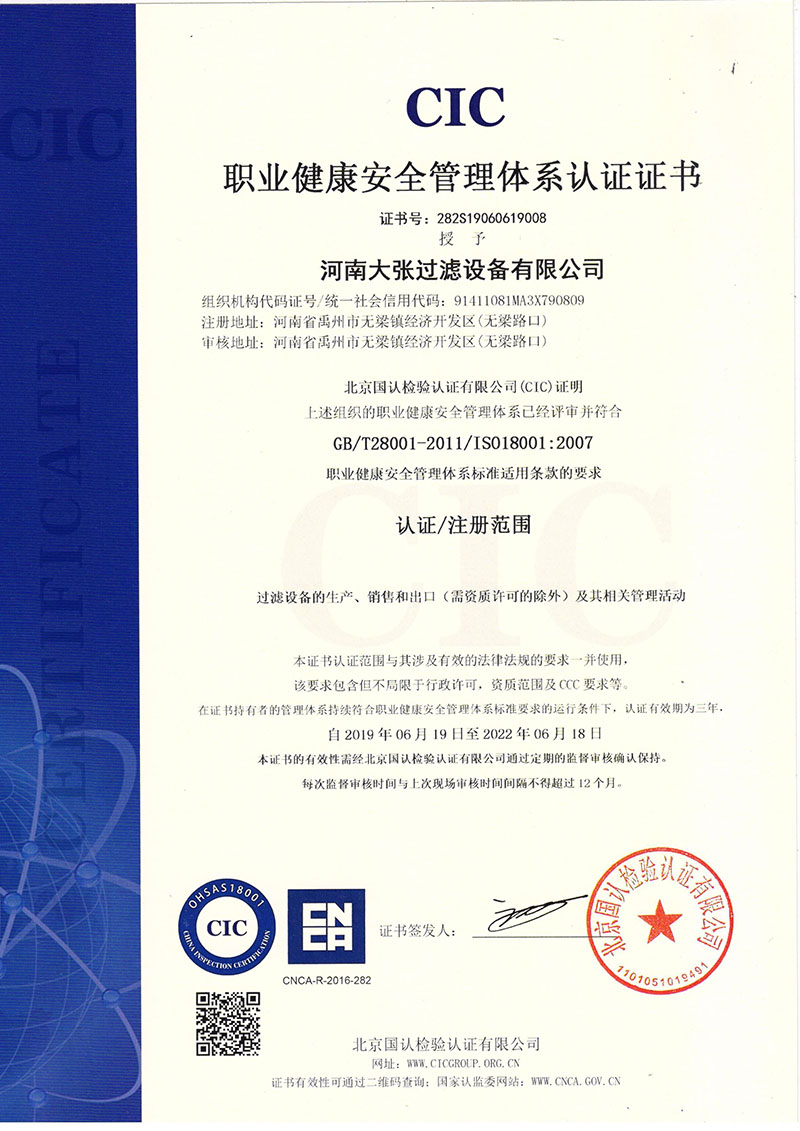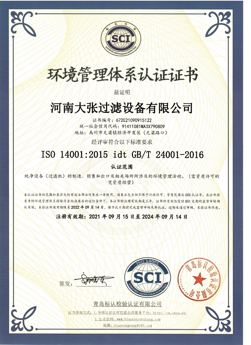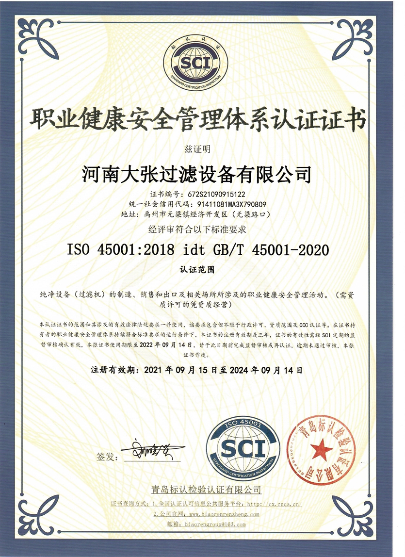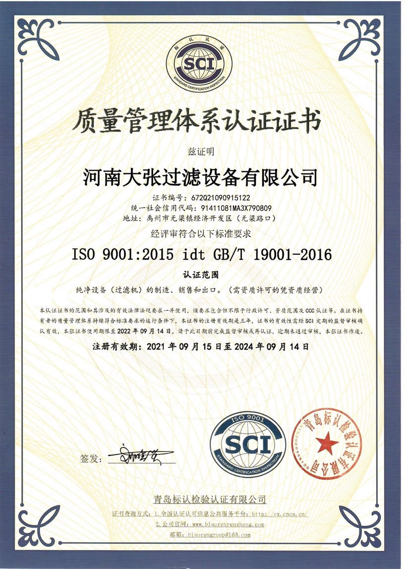 河南大張自成立以來,堅持以質(zhì)量求生存、以信譽求發(fā)展,先后通過了質(zhì)量管理體系、環(huán)境管理體系、職業(yè)健康安全管理體系及知識產(chǎn)權(quán)管理體系的認(rèn)證,河南大張及關(guān)聯(lián)公司先后獲得了“國家級高新技術(shù)企業(yè)”、“國家級第三批專精特新小巨人企業(yè)”、“國家級兩化融合管理體系評定證書”“河南省技術(shù)創(chuàng)新示范企業(yè)”、“河南省節(jié)能減排科技創(chuàng)新示范企業(yè)”、“河南省優(yōu)秀科技型企業(yè)”、“河南省文明誠信企業(yè)”、“河南省名牌產(chǎn)品”“河南省工業(yè)設(shè)計中心”“許昌市市長質(zhì)量獎提名獎”等稱號。公司始終堅持創(chuàng)新力求發(fā)展,技術(shù)改變世界,取得令人矚目的成果。2013年研發(fā)的“免加工密封式方形聚丙烯濾板”打破了中國市場被歐洲壟斷的局面;2015年成立的“河南省新型固液分離裝備工程技術(shù)研究中心”,是河南省一家從事固液分離裝備技術(shù)開發(fā)和應(yīng)用的專業(yè)機構(gòu);2017年成立的“河南省企業(yè)技術(shù)中心”證實了公司科技創(chuàng)新的實力和水平,2018年“高分子隔膜濾板智能自動化混料體系研發(fā)與產(chǎn)業(yè)化”、2019年“環(huán)保行業(yè)專用壓濾機的濾板關(guān)鍵技術(shù)研發(fā)及產(chǎn)業(yè)化”相繼被列入許昌市重大科技專項項目;2020年公司董事長張振利榮獲“全國優(yōu)秀農(nóng)民工”稱號。該年度公司被河南省科技廳認(rèn)定為“河南省高分子濾板先進材料工程技術(shù)研究中心”,參與制定壓濾機方面的團標(biāo)3件,修訂國家標(biāo)準(zhǔn)1件。其相關(guān)技術(shù)在國內(nèi)處于優(yōu)勢。2021年公司被河南省科技廳評為“河南省瞪羚企業(yè)”榮譽稱號。隨著實力的不斷增強,公司成為中國通用機械工業(yè)協(xié)會分離機械分會副理事長單位,同時為滿足市場上對壓濾機產(chǎn)品的需求。