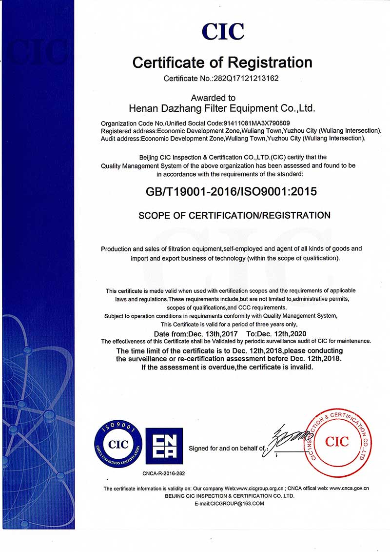 河南大張過濾設(shè)備有限公司位于河南省禹州市無梁鎮(zhèn)無梁經(jīng)濟開發(fā)區(qū)(無梁路口),注冊資金6000萬元,占地面積202畝,廠房面積70000㎡,投資1.5億元,是集生產(chǎn)、制造、科研、銷售、國際貿(mào)易為一體的綜合性科技型企業(yè)。