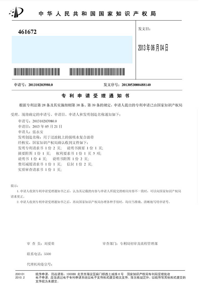公司成功研發(fā)了免加工密封式方形聚丙烯濾板,并獲得發(fā)明專利,打破了中國市場免加工密封式方形聚丙烯濾板被歐洲壟斷的局面,產(chǎn)品打入歐洲市場。